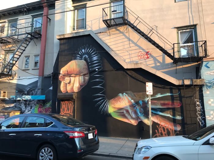 When you think about a day of street art, Jersey City Street Art probably is not at the top of your mind. You’re probably thinking about going to New York City to Bushwick or Harlem or the Bronx. For more on NYC street art, you can read my post: Bushwick Street Art and The Bushwick Collective. You might even be thinking about Philly street art. If you only go to NYC or Philly, you will miss out on the fantastic Outdoor gallery of Jersey City Street Art. You’ll also be missing out on many other New Jersey Street art locations like Newark, Asbury Park and elsewhere.