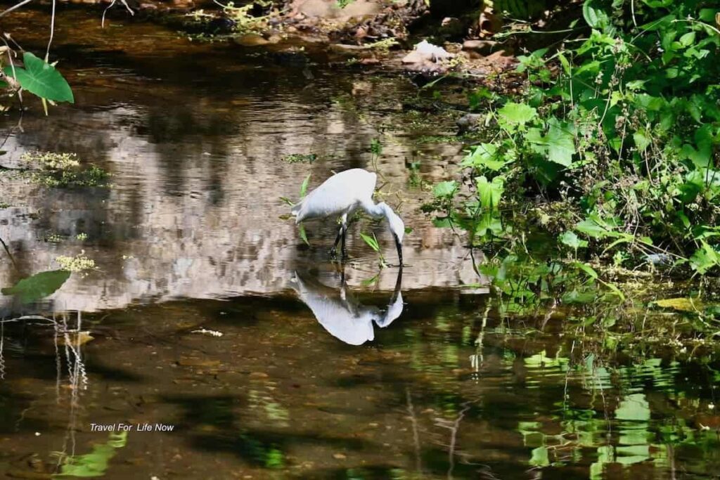 At a nearby small pond, I watched as an egret admired its reflection.